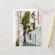 Calle estrecha con casas blancas en Cadaqués, España. Estilo de pintura