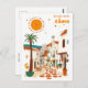 Esta postal de Cádiz, España, es una magnífica obra de arte, con una bella ciudad mediterránea de casas blancas, una calle adoquinada, una palmera y un gran sol. Es una tarjeta de saludo perfecta para los residentes de Càdiz, visitantes, turistas o fans.