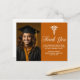 Una tarjeta postal de agradecimiento de graduación de escuela de medicina personalizada clásica en naranja y blanco para una universidad o universidad de la promoción de 2024. Personalice con el nombre de su escuela y la clase graduada bajo el caduceo y la caligrafía para una elegante tarjeta postal de agradecimiento de graduado personalizada con su retrato de último año.