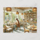 Perfecto para los amantes del café y de los viajes. El cuadro acuático refleja el encanto sereno y acogedor de un pequeño café de Hualien. El interior está decorado con muebles de madera natural con cojines de lino mullido y paredes de color crema pálida adornadas con estantes de macetas de suculentos, libros y jarras de tés locales. Un mostrador de madera recubierto de almendras contiene un molino de café vintage y unas jarras de galletas de cristal, iluminadas por el cálido resplandor de las luces trenzadas de mimbre. Una joven sentada en una mesa redonda, escribiendo postales con una taza de té al vapor a su lado, mientras una pareja en la mesa común comparte una rebanada de tarta de queso, y sus risas llenan el espacio acogedor. La luz del sol entra a través de grandes ventanas, con motivos de baldaquino en el suelo de hormigón pulido, y en el exterior, un patio pintoresco con sillas de hierro forjado y plantas florecientes completa el conjunto idílico. Los tonos cálidos de madera, las cremas suaves y los verdes vivos del cuadro crean un ambiente tranquilo y acogedor.