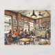 Perfecto regalo para los amantes del viaje y del café. La pintura acuarela ilustra muy bien una escena cotidiana en un pequeño café de Queens, Nueva York, que refleja el ambiente diverso y vibrante de la zona. La decoración de la cafetería es acogedora y acogedora, con paredes de ladrillo visto y una decoración ecléctica que incluye posters neoyorquinos y obras de arte locales. El mobiliario se compone de mesas de madera y sillas de madera que no combinan a la perfección, lo que contribuye a crear un ambiente acogedor y distendido. La paleta de colores es cálida, con tonos marrones, beige y gris urbano sutil. Se representa a los clientes de diversos orígenes disfrutando de su café y pasteles, algunos participando en animadas conversaciones, otros inmersos en sus laptops o libros. La escena capta el espíritu casual y animado típico de Queens, mostrando su esencia multicultural y bulliciosa.