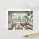 Perfecto para los amantes del café y de los viajes. La pintura acuática refleja el ambiente tranquilo y moderno de una cafetería del distrito Da'an de Taipei. El mobiliario de madera clara y las paredes blancas, complementadas con grandes cristaleras, crean un espacio amplio y acogedor. La vegetación de las pequeñas macetas y de las viñas colgantes aporta vibrantes toques de color. En un mostrador de hormigón pulido adornado con jarrones de judías se ve a un barista con una camisa blanca y fresca preparando meticulosamente café. En una mesa junto a la ventana, un joven con capuchas grises en su laptop junto a un americano helado. En las cercanías, un grupo de amigos comparte galletas matcha y un café con leche en una taza de cerámica, lo que aporta calidez a la escena. Fuera de las ventanas, se ven las dinámicas calles de Taipei, con motos y peatones que ofrecen un ambiente animado. La composición general combina elementos naturales con un diseño minimalista que refleja la cultura cafetera de Taipei.