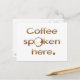 ¡Usa tu adicción a la cafeína con orgullo! El diseño proclama "Café hablado aquí" con un gran anillo de café en medio. Mocha, java, latte, espresso, capuchino - sin importar cómo lo llames, ¡hablas el idioma! Perfecto para su uso en la cafetería, el dormitorio o el sofá de la TV.