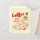 La tipografía diseña una postal con un dicho para los amantes del café y los amigos. Decoración de bistrot con ilustraciones delineados en rojo, naranja y marrón, con una taza de café y un postre de bistrot. La cita del café dice "Café y amigos hacen la mezcla perfecta". Ideal para todo el año y el esquema de color de otoño es ideal para la temporada de halloween y acción de gracias.