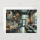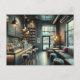 Perfecto regalo para los amantes del viaje y del café. El cuadro capta una escena divertida y elegante dentro de un pequeño y ecléctico café de moda en Seattle. El interior de la cafetería combina elementos urbanos y rústicos, con paredes de ladrillo a la vista y elementos metálicos modernos. Los colores dominados por los grises oscuros y los tonos neones vivos crean un ambiente moderno y juvenil. El mobiliario es una mezcla intrigante de sofás de lujo vintage y taburetes minimalistas que le dan un encanto ecléctico. Una puerta acristalada se abre a la concurrida calle exterior, que une el interior íntimo del café con la dinámica vida de la ciudad. Los detalles artísticos, como los cuadros abstractos y las lámparas de estilo industrial, contribuyen a crear un ambiente de moda, mientras que las luces únicas de formas geométricas emiten una iluminación suave y ambientada, creando sombras intrigantes y realzando el ambiente general y moderno del café.