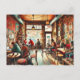 Perfecto regalo para los amantes del viaje y del café. La pintura acuarela captura maravillosamente una escena diaria en un pequeño café comunitario en Bucktown, Chicago, mostrando las singulares vibraciones locales del barrio. La cafetería presenta un interior acogedor y bohemio, con muebles eclécticos, murales murales vibrantes y cuerdas de luces de hadas que crean un ambiente encantador. La paleta de colores es cálida y acogedora, dominada por rojos profundos, naranjas y marrones que realzan el ambiente acogedor. Se ve a los clientes de diferentes edades y orígenes disfrutando de su tiempo, algunos participando en discusiones profundas, otros leyendo o trabajando en sus computadoras portátiles en silencio. La cafetería ofrece un ambiente informal y acogedor, resaltado por un tablero de anuncios de la comunidad lleno de eventos y avisos locales, lo que refuerza la sensación de conexión y encanto local. Esta escena resume perfectamente el espíritu animado y unido de la comunidad de Bucktown.