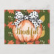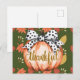 Postal Calabaza Agradecida con Lazo de Lunares