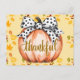 Abraza el encanto acogedor del otoño con este diseño de Calabaza Agradecida con Lazo de Lunares. Con una calabaza generativa bellamente ilustrada adornada con un lazo negro y blanco elegante y letras script elegantes, este diseño combina perfectamente la calidez de la casa de campo con el estilo moderno.