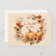 Envía un saludo de Acción de Gracias a amigos o familia con esta postal que contiene una corona de calabazas y flores de otoño en tonos naranjas y neutros alrededor de las palabras "Estoy agradecido por ti". El texto puede cambiarse fácilmente a cualquier saludo que prefiera.
