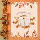 Esta encantadora postal de Acción de Gracias cuenta con una hermosa calabaza blanca rodeada de hojas de otoño en cálidos tonos naranja y marrón. El delicado diseño de las acuarelas aporta un toque de elegancia rústica, por lo que es perfecto para compartir sus saludos de vacaciones. El suave color beige le da un toque acogedor, haciendo de esta postal una forma deliciosa de enviar sus deseos de Acción de Gracias a amigos y familiares.