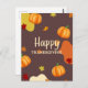 Esta divertida y festiva postal de Acción de Gracias cuenta con calabazas naranjas brillantes y coloridas hojas de otoño contra un rico fondo marrón. El diseño alegre es perfecto para difundir alegría y calidez de Acción de Gracias a sus seres queridos. Con sus colores vibrantes y su estilo lúdico, esta postal es la manera ideal de celebrar la temporada.