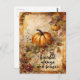 Postal Calabaza y hojas de otoño en acuarela vibrante de