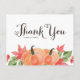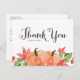 Envía agradecimiento con esta tarjeta postal de agradecimiento personalizable. Cuenta con calabazas naranjas de acuarela y hojas de arce con caligrafía rústica. Personaliza añadiendo tus detalles. Esta tarjeta de agradecimiento de calabaza es perfecta para bodas de otoño, cumpleaños, baby showers y bridal showers.