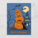 Postal Calabazas de Halloween y gato negro