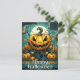 Esta postal creativa Happy Halloween muestra el ilustracion de una calabaza loca de aspecto siniestro bajo una luna llena. Por favor, siéntase libre de ajustar todas las opciones disponibles como desee.