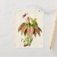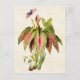 Postcard con una imagen vintage digitalmente limpia y realzada de una planta de caladio verde y rosa con una mariposa en un fondo de pergamino. Ilustrado por Etienne Denisse para Flore d'Amerique, publicado en París, 1843.