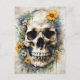 Postal Calavera acuarela con flores silvestres