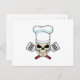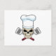 Postal Calavera como cocinero con gorro de cocina