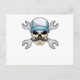 Postal Calavera con Bigote y Llave Inglesa