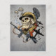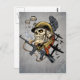 Postal Calavera con casco, aviones y bombas