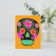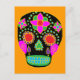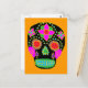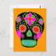 postal del cráneo de azúcar de arte folclórico mexicano. El color de fondo se puede personalizar.