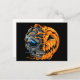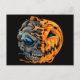 Da miedo que un jack-o-lantern derrita un calavera espeluznante con ojos azules.