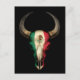 Postal Calavera de toro de bandera mexicana en negro