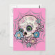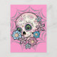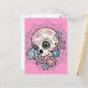 Calavera de azúcar del Día de los Muertos diseñada en colores pastel con flores colocadas en una telaraña.
