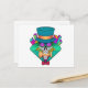 Postal Calavera jugando ajedrez con pieza de torre