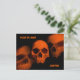Una postal en negro y naranja con mi fresco diseño de cráneo colgado en negro y naranja. Ideal para el envío de correos o para el encuadre y la decoración.