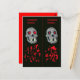 Calaveras grises con ojos rojos brillantes y manchas de sangre en el fondo negro con palabras "Horror adentro". ¡Los marcadores perfectos para todo aquel que ame leer libros de misterio y horror! Simplemente corta la línea roja y obtendrás dos marcadores.