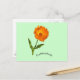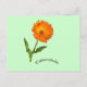 Flor naranja con gotas de lluvia en pétalos, texto arcado=Calendula (fondo de color)