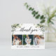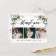 Caligrafía moderna, elegante acuarela verde, tarjeta postal de agradecimiento de 3 fotos de boda incluye hojas de eucalipto, follaje botánico verde, hojas azules polvorientas y otra hermosa vegetación botánica.