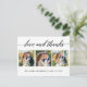 Moderno Elegante Caligrafía Marcos de Oro Amor y Gracias Boda 3 Foto Postal de agradecimiento
