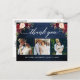 Caligrafía Moderna, Floral Burgundy Marsala Acuarela Elegante, Bodas 3 Fotos Agradecimiento Postal Tarjeta de Madera Azul Rústica