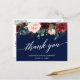 Caligrafía Moderna Elegante, Acuarela Burgundy Marsala Azul Floral Tarjeta de Agradecimiento de Boda