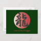 Postal Caligrafía china para dragón en bola roja