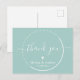 NewParkLane - Tarjeta de agradecimiento de boda personalizada y sofisticada, con 'Gracias' en tipografía de letra elegante / caligrafía con florituras, un pequeño corazón blanco y un marco redondo punteado, sobre un fondo verde turquesa.