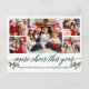 Guión de caligrafía moderna 5 Collage de fotos de familia de fotos más alegría Este año tarjeta postal de vacaciones incluye Watercolor Holly Berries - Green ScriptFeliz Año Nuevo 2022