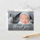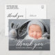Tarjeta postal de agradecimiento con foto de nuevo bebé con caligrafía moderna