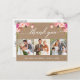 Caligrafía Moderna, Acuarela Rosa Floral, Boda 3 Fotos Gracias Tarjeta Postal Kraft