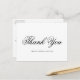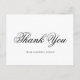 Elegante y clásico postal de agradecimiento con un diseño sencillo con "gracias" en una caligrafía negra formal junto con su nombre de negocio en un tipo de letra serif, sobre un fondo blanco. El reverso tiene su dirección de retorno junto con su mensaje personal, firma, título y nombre comercial. Un diseño tradicional y elegante, ideal para cualquier profesional.