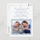 Envíe saludos de vacaciones a la familia y amigos con esta postal de vacaciones/Navidades con el texto 'Saludos de la temporada de invierno' con tipografía caligráfica. Los copos de nieve azules y un precioso marco de borde de nieve azul adornan la postal. Una forma encantadora de saludar a la familia y a los amigos. Personalice agregando sus fotos y textos favoritos.