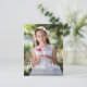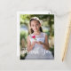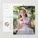 Esta simple tarjeta postal de agradecimiento de Primera Comunión Católica cuenta con una foto completa en la parte frontal con una bonita caligrafía blanca, un dulce mensaje de agradecimiento editable en la parte posterior y presenta un Cáliz de Comunión Santa de acuarela y una corona con dirección de remitente. Esta tarjeta de agradecimiento de Primera Eucaristía es editable para diversas ocasiones religiosas cristianas, o para actualizar a su propio mensaje de agradecimiento personal.