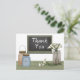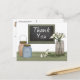 Este diseño cuenta con un frasco de albañil beige lleno de lirios blancos de calila. En la mesa de roble hay un frasco de albañil beige y azul, además de otras cal que también descansan sobre la mesa. Una pizarra colgada en la pared de esta carta rústica pero elegante. El texto moderno de la pizarra dice: "Gracias". Hay mucho texto de personalizable en el reverso de esta popular tarjeta de agradecimiento para que usted lo personalize con su propia información o simplemente elimine los campos de texto si prefiere escribir a mano su mensaje personalizado. Tenemos sellos, invitaciones y tarjetas RSVP para este diseño. NOTA: Todos los artículos de esta tienda están protegidos por derechos de autor y no se pueden copiar ni redistribuir de ninguna manera. Para consultas acerca de este u otros diseños que se ven aquí, o si necesita ayuda con la colocación de fotos, personalización, selección de color o pedidos especiales, por favor utilice la función de envío de mensajes adjunta a esta tienda y estaremos encantados de ayudarle