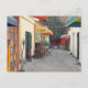 Una colorida calle en Lima Perú. Durante la afluencia de la comida, la pequeña calle está llena de gente que come en las pequeñas mesas. Más tarde por la tarde, el lugar es tranquilo y los colores vivos, rojo, naranja, amarillo y turquesa, crean un ambiente interesante.