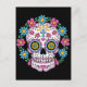 El cráneo de azúcar del Día de los Muertos está rodeado de flores de colores.