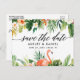 Postal Calligrafía floral coral tropical salva la fecha