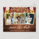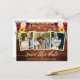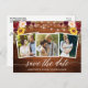 Guión moderno de caligrafía, luces de maderas y cuerdas rústicas, acuarela borgoña Floral Salven la Invitación de compromiso de fecha Pareja 3 Foto Postal. Rosas de Borgoña, rosas rosas rosadas, rosas rojas, girasoles y vegetación botánica.