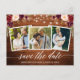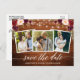 Guión moderno de caligrafía, luces de madera y cuerdas rusticas, acuarela floral borgoña Salven la Invitación de compromiso de fecha Pareja 3 Foto Postal